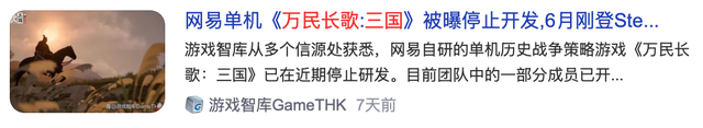 前段时间,网易旗下一款主打三国历史题材的单机游戏《万民长歌:三国》传出消息被砍,据悉该项目从去年开始就被暂停预算,因为游戏对标《三国志》系列,主打无缝大地图、即时战斗和深度策略,游戏开发难度大,很难顶住回报周期长的压力。